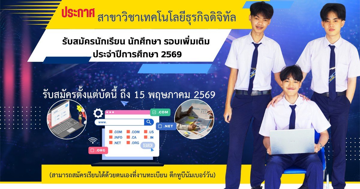 📌ประกาศวิทยาลัยเทคนิคศรีสะเกษ เรื่อง การรับสมัครนักเรียน นักศึกษา รอบเพิ่มเติม ประจำปีการศึกษา 2569 รับสมัครตั้งแต่บัดนี้ ถึง 15 พฤษภาคม 2569 (สามารถสมัครเรียนได้ด้วยตนเองที่งานทะเบียน ตึกทูบีนัมเบอร์วัน)