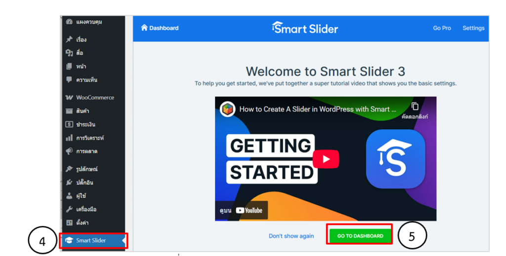 • คลิกเมนู Smart Slider 3  > Dashboard  คลิกปุ่ม Go to dashboard