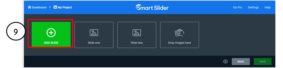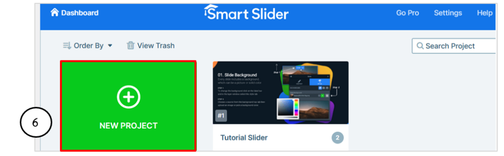 • แสดงหน้าจอ Dashboard ของ Smart Slider คลิก New Project