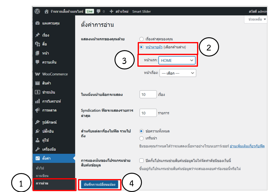8.2.1 การตั้งค่าให้แสดงหน้าแรกของร้านค้า