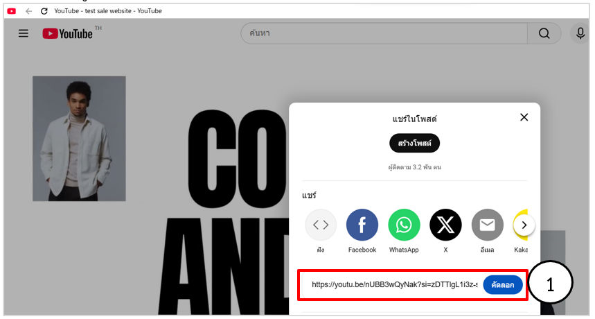 รูปที่ 8.19 แสดงหน้าจอการคัดลอกลิงก์ของวิดีโอ YouTube