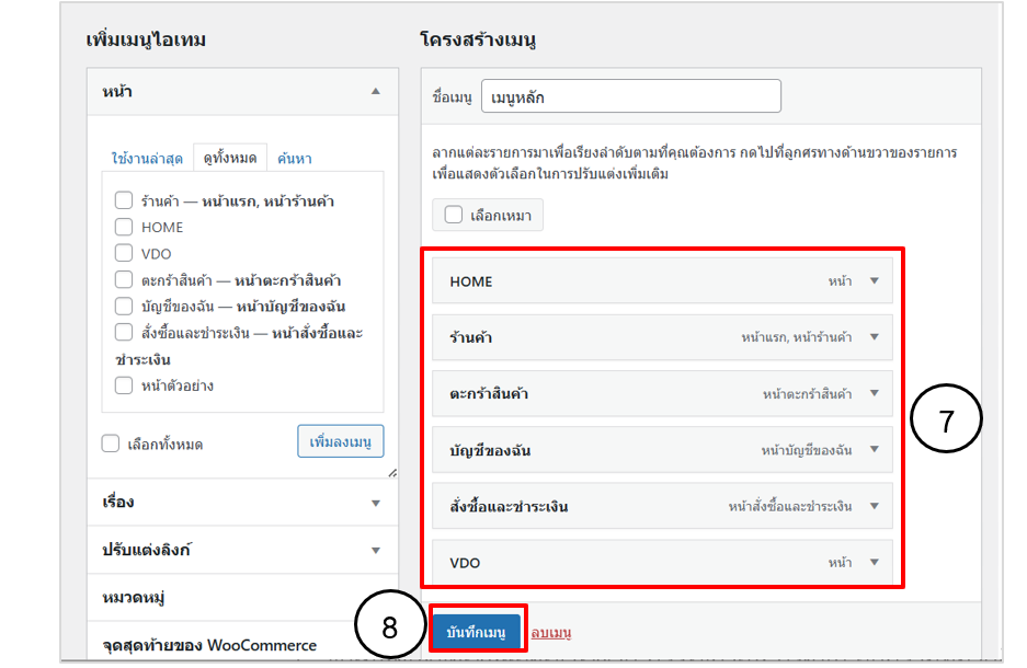 • คลิกปุ่ม บันทึกเมนู