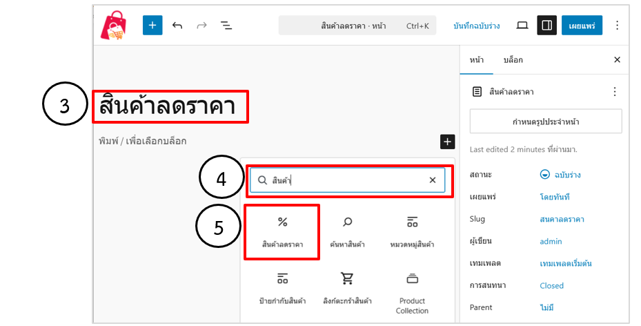3. ใส่ชื่อเว็บเพจ : สินค้าลดราคา