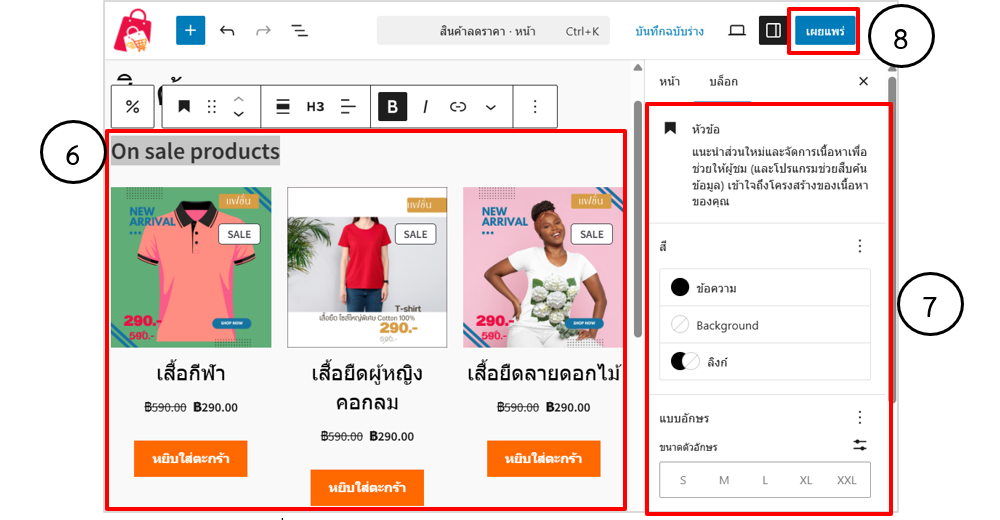 5. เลือกบล็อก %สินค้าลดราคา