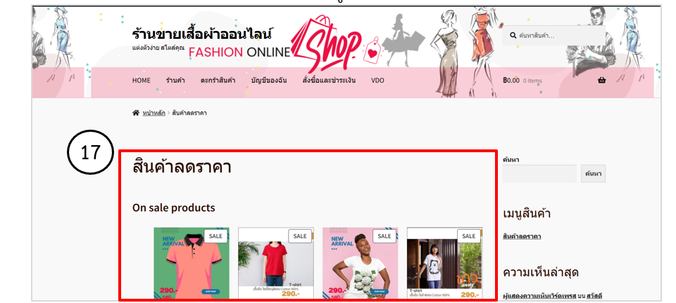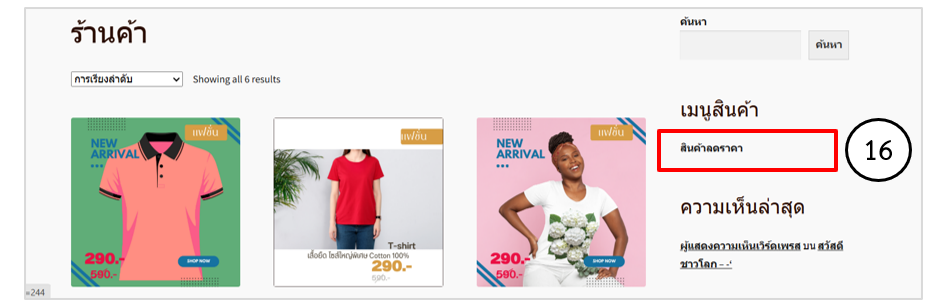 • แสดงหน้ารายการสินค้าในร้านที่มีการลดราคาในเว็บเพจ