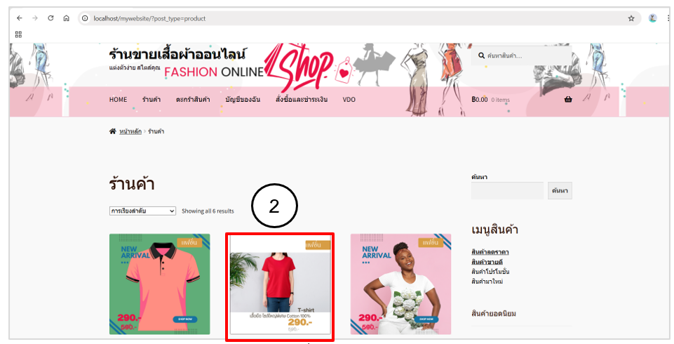 2. แสดงหน้าร้านค้า คลิกรายการสินค้าเพื่อตรวจสอบหน้าสินค้า