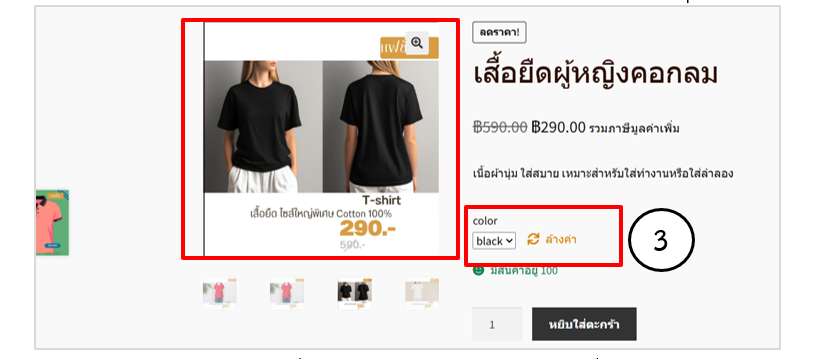 3. แสดงหน้ารายการสินค้าที่เลือก ทดสอบเลือกการแสดงผลตามคุณสมบัติสีที่เลือก
