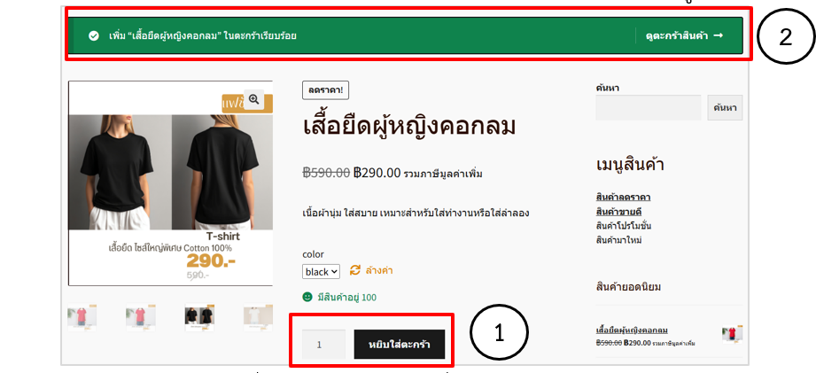 2. จะแสดงแถบสีเขียวแจ้งสถานะการเพิ่มสินค้าในตะกร้าเรียบร้อย คลิกดูตะกร้าสินค้า