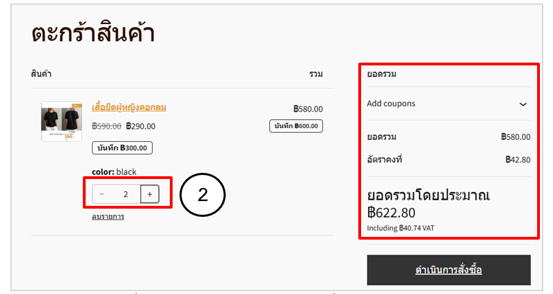 • ทดสอบเพิ่มจำนวนสินค้าในตะกร้าสินค้า ตรวจสอบการคิดยอดรวมสินค้า