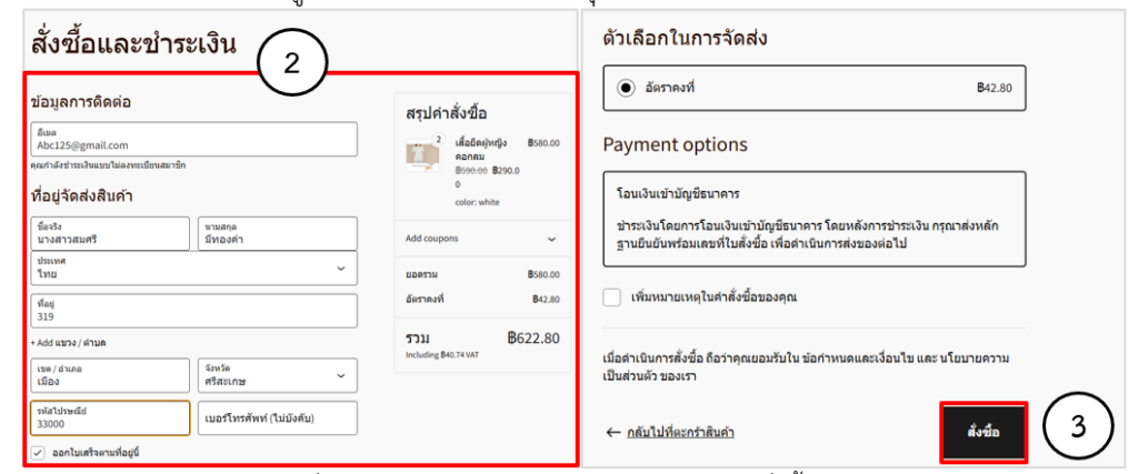 • เมื่อกรอกข้อมูลครบเรียบร้อยแล้วคลิกปุ่มสั่งซื้อ