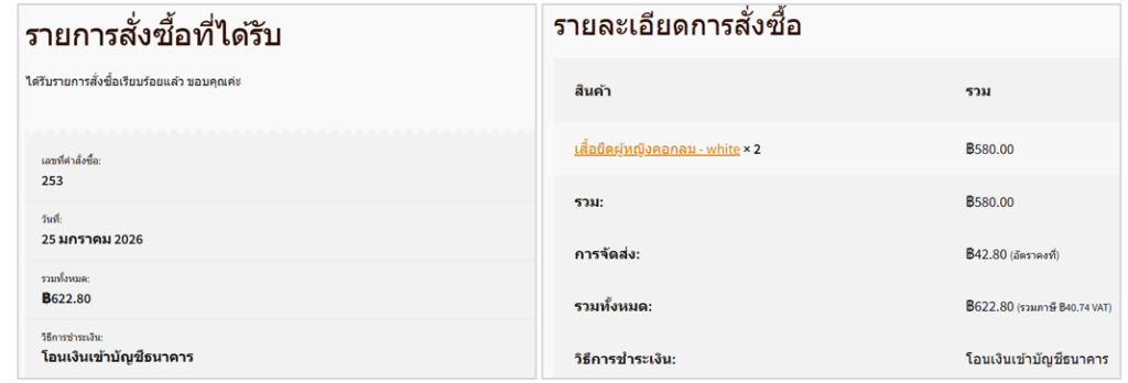 • ระบบจะสรุปคำสั่งซื้อ ทดสอบกรอกข้อมูลการสั่งซื้อสินค้า