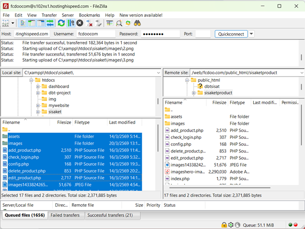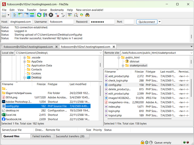 - เชื่อมต่อกับโฮสผ่าน FTP